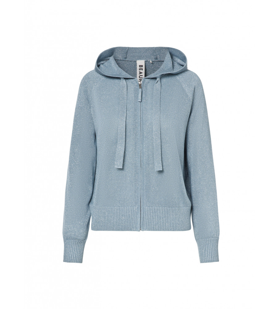 Originálny a pritom nenútene elegantný. Tento modrý sveter Beaumont s kapucňou spája komfort so štipkou luxusu. Jemne lesklý materiál s glitrovým efektom dodáva outfitu jedinečný vzhľad, zatiaľ čo rebrované lemy a uvoľnený strih zaručujú pohodlie počas celého dňa. Kapucňa so šnúrkami pridáva ležérný nádych, vďaka čomu je tento kúsok ideálny na bežné nosenie aj na štýlové voľnočasové kombinácie. Zloženie: 79% viskóza a 21% polyester.