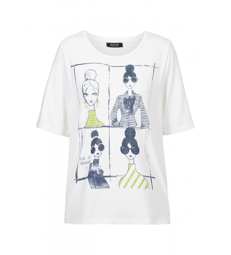 Dámske tričko TUZZI s originálnou fashion potlačou inšpirovanou parížskym štýlom dodá outfitu šmrnc a hravosť. Jemný materiál a pohodlný strih z neho robia ideálny kúsok na každodenné nosenie a skvelo vyzerá s džínsami aj sakom. Zloženie: 95% viskóza a 5% elastán.