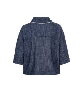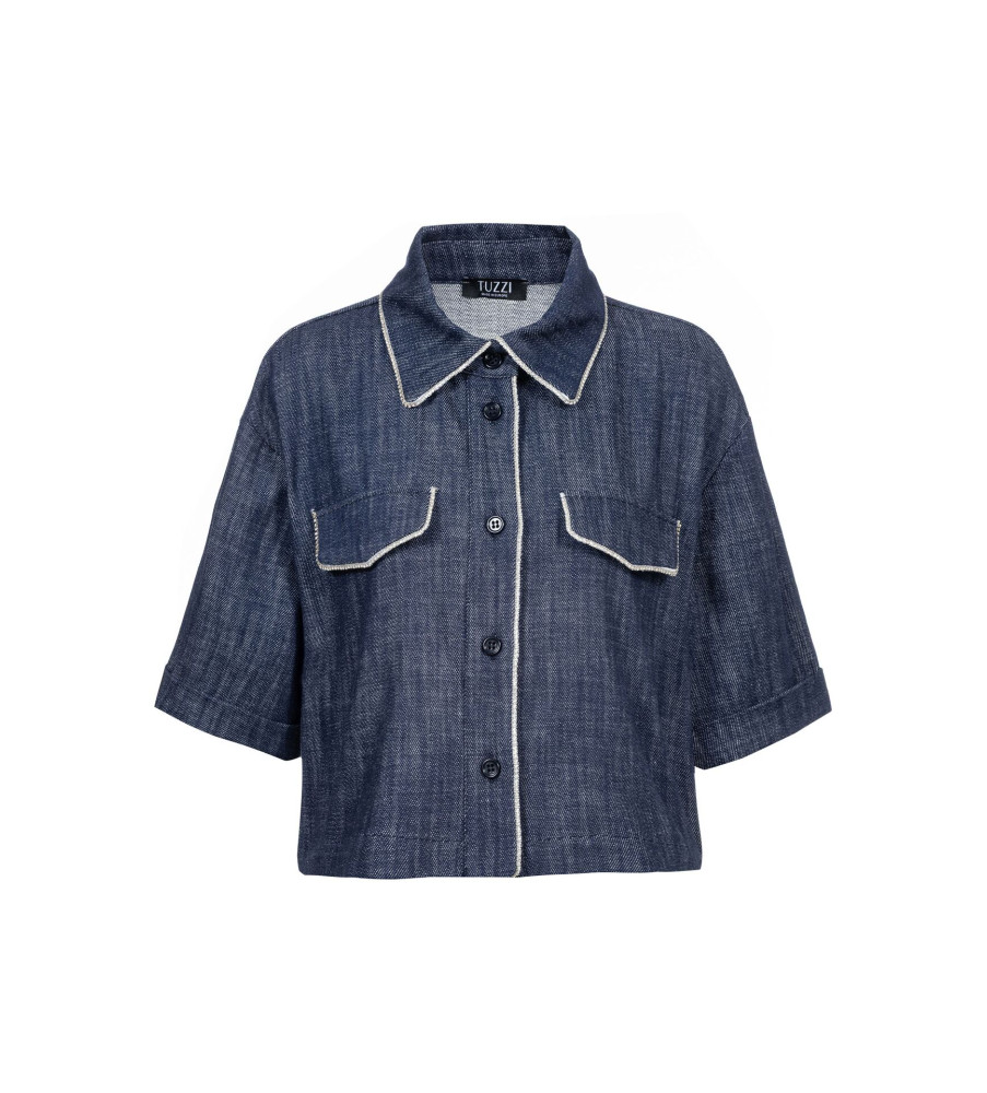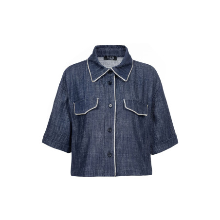 Štýlový denimový blejzer z kolekcie "Beach, please" od TUZZI dodá Vášmu šatníku punc luxusu. Tmavomodrý blejzer/košeľová bundička v sebe spája nadčasovosť džínsoviny s nečakanou eleganciou vďaka lemovaniu drobnými čírymi kamienkami po celom obvode goliera, po obvode chlopní náprsných vreciek i celej dĺžke zapínania. Tento "boxy strih" Vám zabezpečí maximálne pohodlie a modernú siluetu vďaka voľnejšiemu, rovnému strihu. Vysokokvalitná 100%-tná bavlna v krásnej tmavomodrej farbe výborne drží svoj tvar. Blejzer sa zapína na gombíky a rukávy sú zakončené manžetami. Náprsné vrecká sa pod ozdobenými chlopňami nenachádzajú. Ideálna voľba na vrstvenie počas prechodného obdobia alebo ako štýlový top na teplejšie dni. V spojení s krásnymi denimovými nohavicami z rovnakej kolekcie vytvoríte dokonalý set, ktorý neunikne žiadnemu pohľadu.