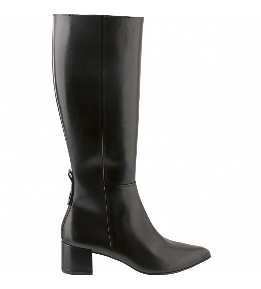 Čižmy pod kolená v hladkej, jemnej teľacej koži v jednoduchom dizajne so vsadenou gumičkou sú nadčasovým, všestranne nositeľným kúskom