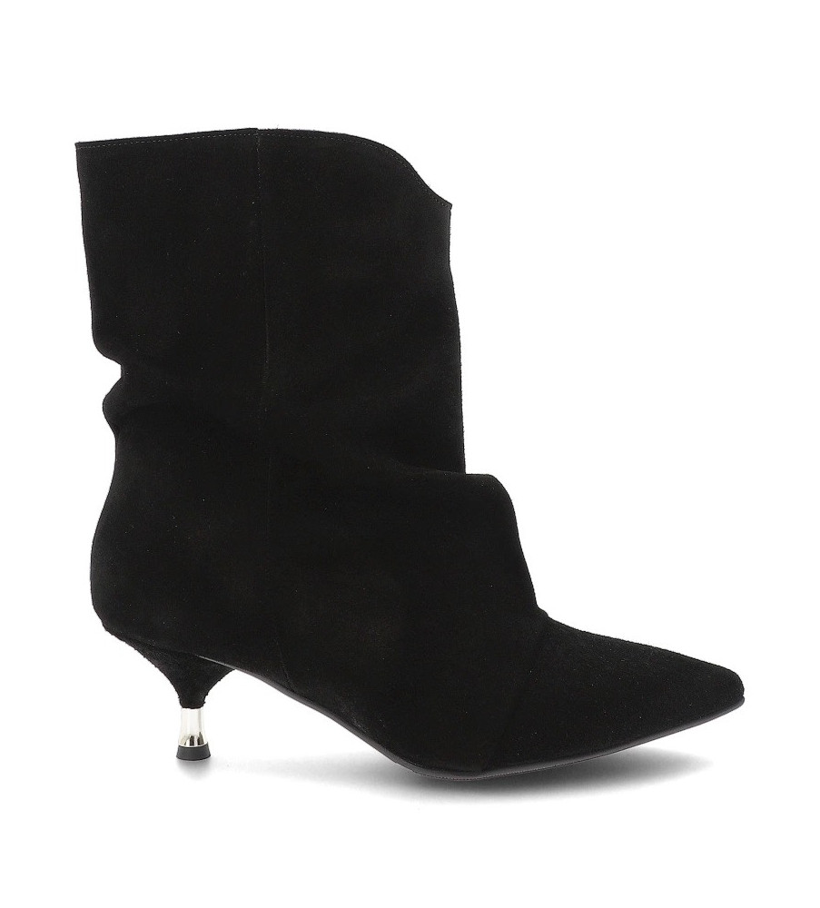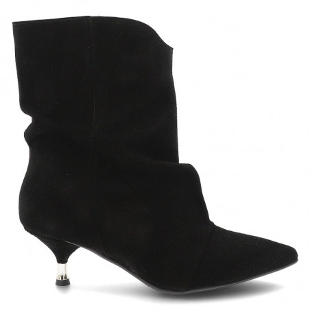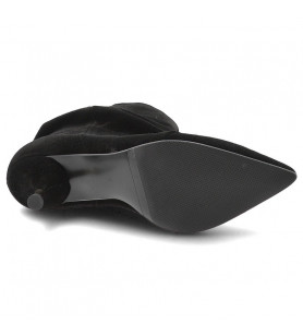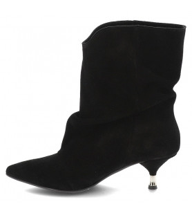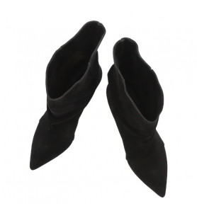 Kotníkové čižmy značky Chebello sú základom každého šatníka. Ľahký semišový model v čiernej farbe má lichotivý strih, ktorý je jemne riasený a na nohe krásne drží tvar. Čižmičky majú nízky podpätok a nie sú zateplené textilom, ale sú podšité kožou.