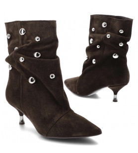 Semišové kotníkové čižmy značky Chebello sú naozaj nadčasovým kúskom. Sú veľmi pohodlné, jemne riasené a na nohe krásne držia tvar. Z vonkajšej strany majú kovové aplikácie v striebornej farbe, ktoré pozdvihnú každý váš outfit. Kotníčky majú nízky podpätok a sú podšité kožou.