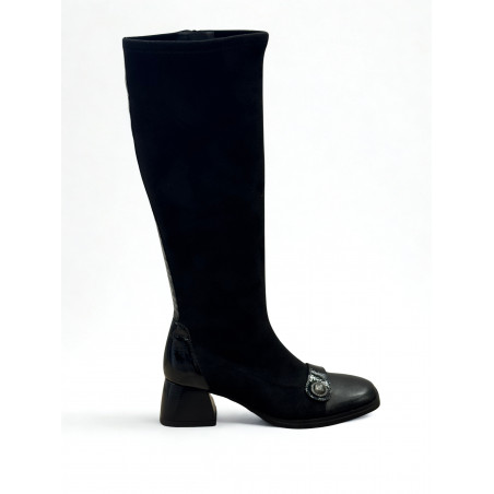 Vysoké čižmy značky Hispanitas - štýl a komfort v jednom. Nadčasová elegancia, ktorá perfektne doplní váš šatník. Kvalitná hladká koža na špičke dodáva čižmám luxusný vzhľad, zatiaľ čo ozdobný kovový detail pridáva na originalite. Stabilný široký podpätok vám poskytne pohodlie aj pri celodennom nosení, čo však zvýrazní najmä použitý TRIFLOW Gel system (tri polstrované vrstvy poskytujú pocit chôdze ako na gélovom vankúšiku, zvyšujú tak odpruženie pre pohodlné nosenie). Čižmičky sa dokonale prispôsobia nohe vďaka elastickej sáre - ak hľadáte všestranný kúsok na celú jesennú a zimnú sezónu, tento model by rozhodne nemal chýbať vo vašom šatníku.