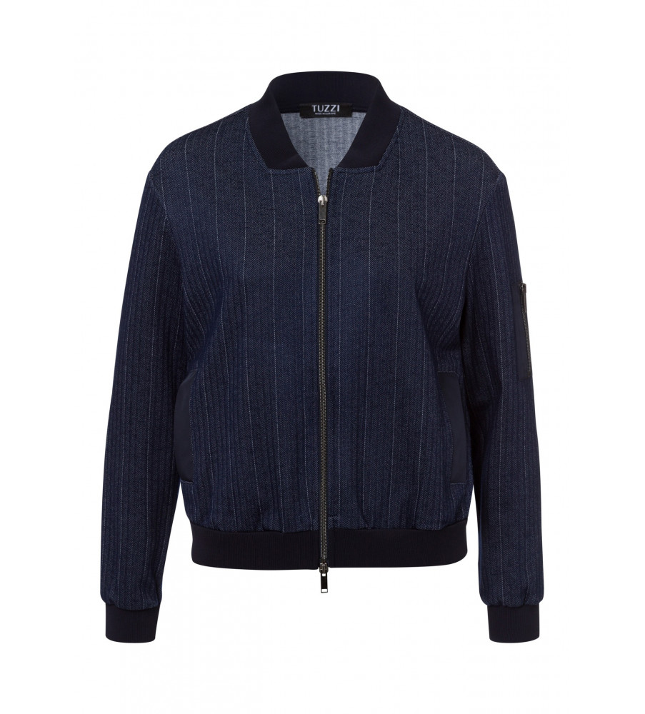 Nepodšitá bunda s dlhým rukávom je ideálnou voľbou na chladnejšie dni. Bunda je z línie RED edition , takže výborne ladí s inými produktami z tejto línie ,ale aj samostatne. Bombérka je veľmi pohodlná so zapínaním na predný zips. Farba je modrá s jemným ecru prúžkom. Má dve bočné vrecká a vrecko na zips na rukáve. Bunda je ukončená pri krku,v spodnej časti a na rukávoch na tmavý patent. Bunda je z mäkučkého materiálu v zložení: 60% viskóza, 35% polyester, 5% elastan