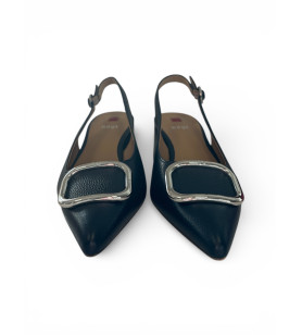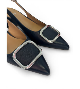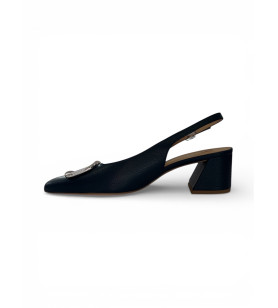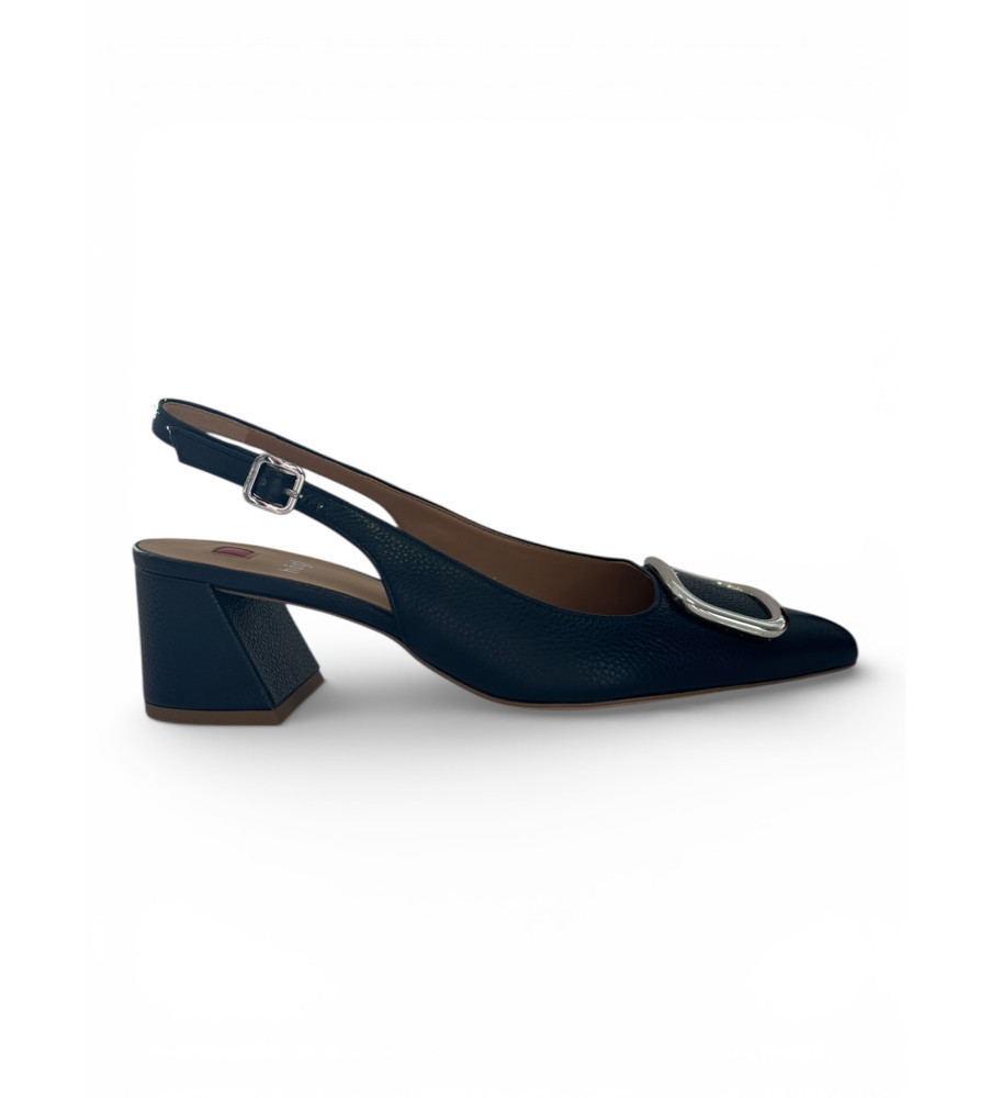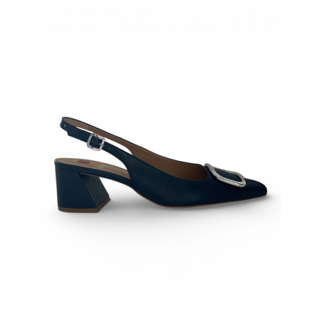 Luxusné kožené lodičky z dielne HŌGL sú dokonalou voľbou pre ženy, ktoré hľadajú kvalitu a komfort. Krásny tmavomodrý odtieň dopĺňa výrazná strieborná ozdoba na špičke. Blokový podpätok Vám zaručí pohodlné nosenie počas celého dňa. Otvorená päta s nastaviteľným remienkom dotvára elegantný look. Perfektné lodičky na spojenie s akýmkoľvek outfitom.