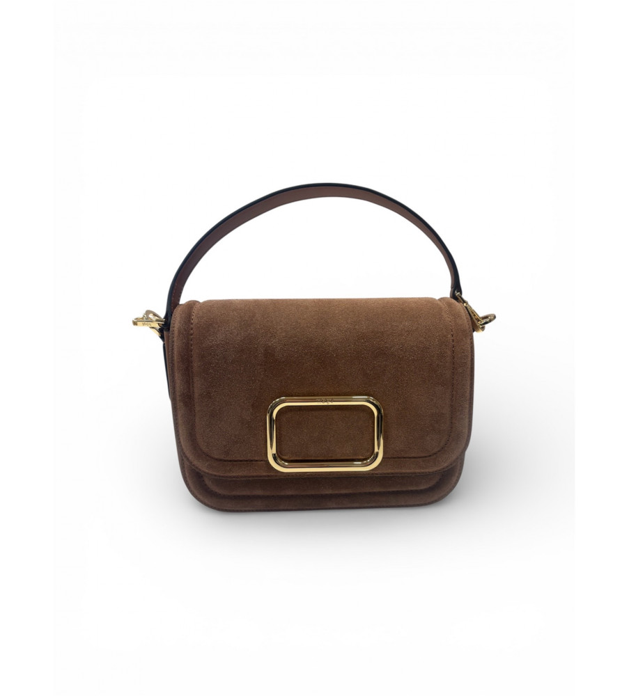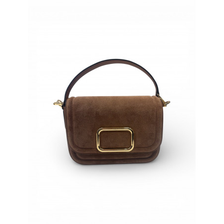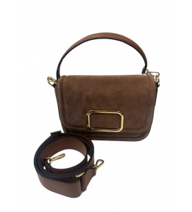 Kabelka HŌGL v jemnom púdrovo-hnedom odtieni zo semišu pôsobí elegantne, no zároveň mäkko a žensky. Zlatý kovový detail na prednej strane dodáva modelu luxusný akcent, zatiaľ čo čistý tvar a krátke uško vytvárajú moderný, nadčasový look. Perfektne doplní neutrálne outfity, béžové tóny aj jesenné vrstvenie. Štýlový doplnok, ktorý zaujme bez zbytočnej výraznosti. Zloženie: 100% koža.