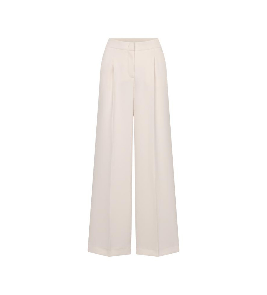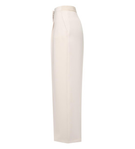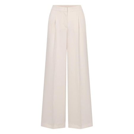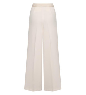 Elegantné široké nohavice v jemnom krémovom odtieni - nadčasový kúsok z dielne Raffaello Rossi. Čisté línie, rozšírený strih a kvalitný, padavý materiál, ktorý skvele drží tvar a pôsobí luxusne. Vysoký pás navyše opticky predlžuje postavu. Neutrálna krémová farba a lichotivý strih zaručia, že tento kúsok okamžite zladíte s elegantnými i ležérnymi kúskami. Nohavice sa zapínajú na skrytý nohavicový háčik a zips, a na zadnej časti pásu nájdete i jemný nápis značky v mierne metalickej farbe. Na bokoch sa nachádzajú vrecká. Zloženie: 100% polyester.