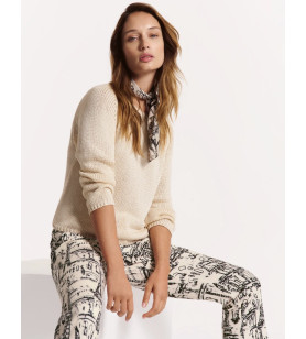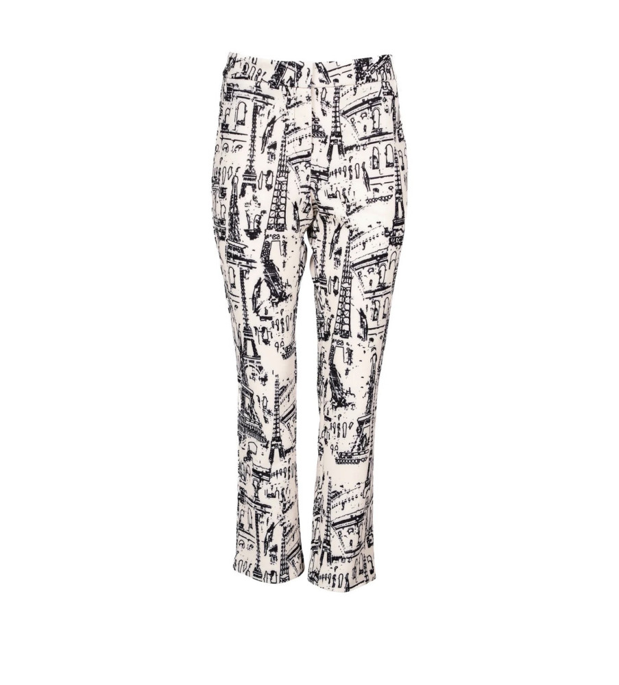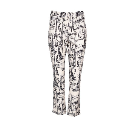 Dámske nohavice FABER zaujmú originálnou grafickou potlačou inšpirovanou mestskou architektúrou. Krémový základ doplnený čiernym vzorom vytvára moderný a zároveň nadčasový vzhľad. Rovný strih pôsobí elegantne, opticky predlžuje nohy a zabezpečuje pohodlie pri celodennom nosení. Nohavice sú ideálnou voľbou na vytvorenie štýlového setu s blejzerom z rovnakej kolekcie, no rovnako dobre vyniknú aj v kombinácii s jednoduchým topom či košeľou. Perfektný kúsok pre ženy, ktoré majú rady módu s výrazným dizajnom. Zloženie: 95% polyester a 5% elastán.