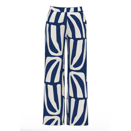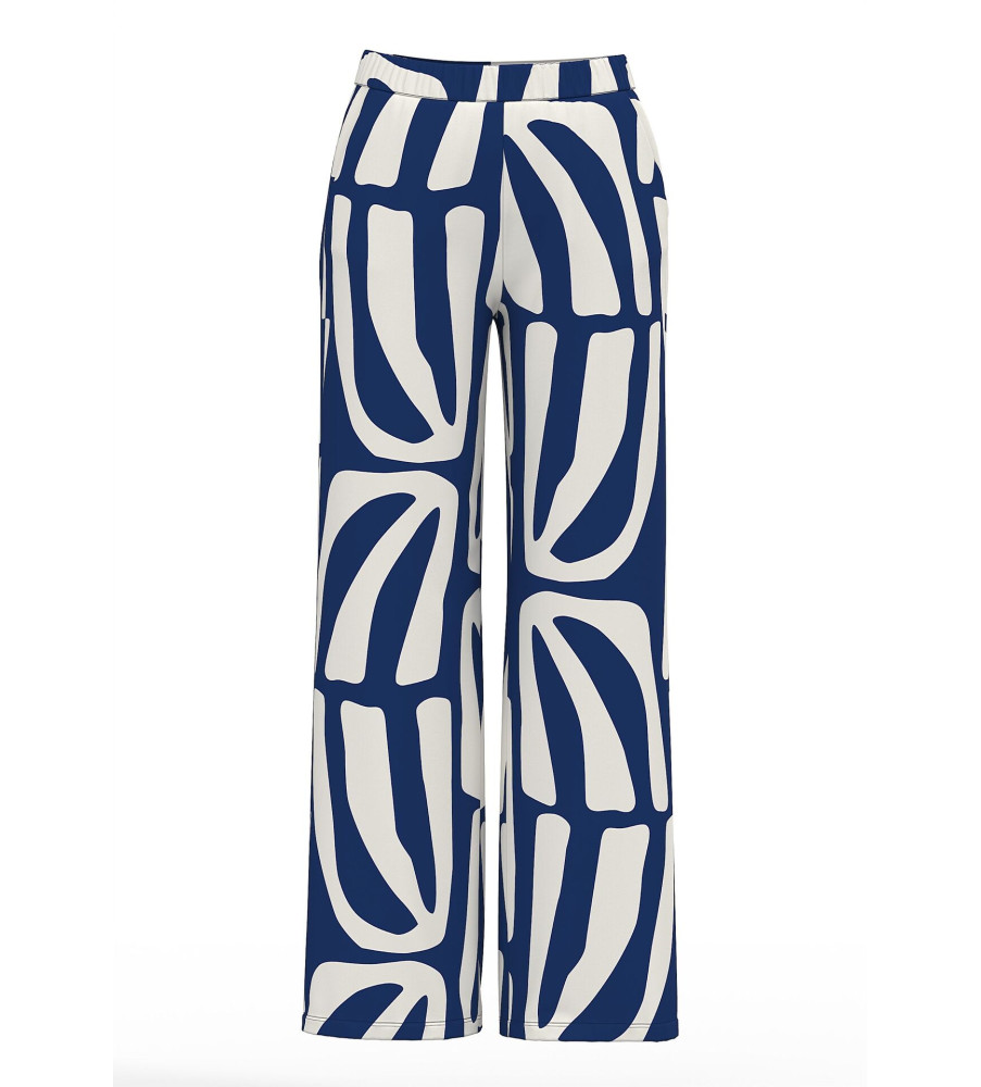 Elegantné dámske nohavice s abstraktným vzorom v krásnej béžovej a tmavomodrej farbe si zamilujete pre viacero dôvodov. Ich ľahký vzdušný materiál je skvelý na celodenné nosenie a navyše, elastický pás Vám dopraje maximálne pohodlie. Výrazný grafický vzor môžete spojiť s jednoduchým topom či košeľou. Alebo si vytvoriť celý komplet v spojení s originálym topom z rovnakej kolekcie "Beach, please". Ak sa chcete celý deň cítiť komfortne a zároveň túžite outfitom zaujať, neváhajte siahnuť po týchto nohaviciach, ktoré využijete ako na bežné nosenie s teniskami či sandálkami, tak i na formálnejšiu udalosť v spojení s lodičkami a sakom.