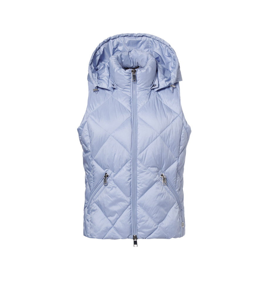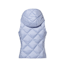 Dámska prešívaná vesta ASHLEY v elegantnom svetlomodrom odtieni Vám svojim lichotivým tvarom krásne zvýrazní siluetu. Praktická kapucňa Vás ochráni pred vetrom a spolu s vysokým stojatým golierom Vás príjemne zahrejú. Navyše, je odnímateľná vďaka kovovým cvokom po celom obvode goliera a vďaka sťahujúcim gumičkám si ju ešte môžete upraviť. Moderné diagonálne prešívanie jej dodáva sofistikovaný vzhľad a zároveň zabezpečuje rovnomerné rozloženie výplne pre dokonalý komfort. Ľahký hrejivý materiál je ideálny na jar či jeseň a vďaka univerzálnej farbe túto vestu bez problémov skombinujete s rôznymi outfitmi. Vytvoríte ňou ako ležérny mestský look, tak i pohodlný outfit na voľný čas či cestovanie.